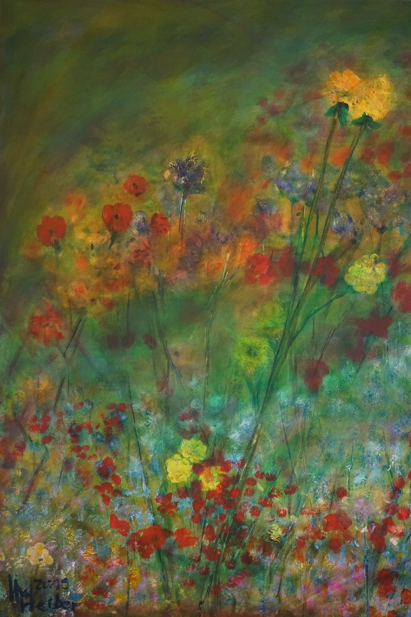 Dieses Erleben erfahre ich im informellen Ansatz meines Malens, mitunter auch im Versuch der (lyrischen) Abstraktion, aber auch im Ausarbeiten aufsteigender „idealtypischer“ Landschaften. Die Kunst ist eine Gegen-spielerin der Angst, sie führt uns ins Spiel. Und Spiel ist die Freiheit tiefste Empfindungen in ihren Wechselwirkungen gestaltend abzubilden. Der Gebrauch diverser Materialien sorgt für entsprechende Interaktionen auf dem Malgrund. Dabei leiten Neugier am Entdecken von Strukturen, Materialien und Räumen, die aus Farben, Kontrasten und Gesten entstehen, den Prozess. Sich einstellende Pareidolien und apophäne Eindrücke setzen eine affektive Dynamik frei, die zum Ausgangspunkt für den nächsten Arbeitsschritt werden.